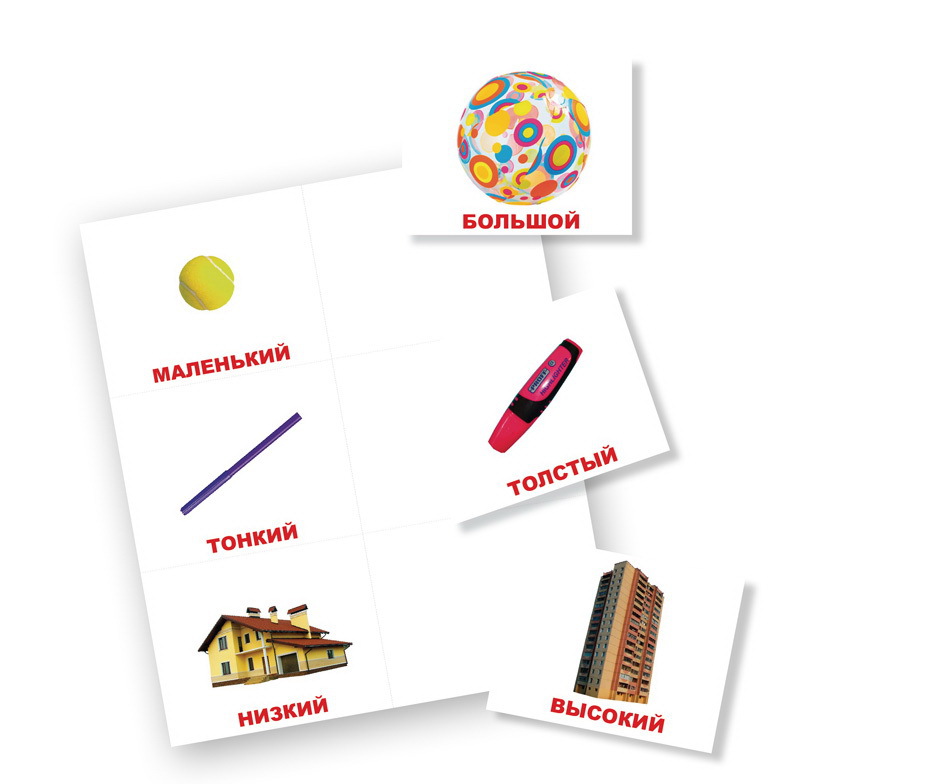 Состав:Большой-маленький, толстый-тонкий, высокий-низкий, длинный-короткий, лёгкий-тяжёлый, широкий-узкий, быстрый-медленный, мягкий-твёрдый, шершавый-гладкий, сырой-варёный, холодный-горячий, кислый-сладкий, весёлый-грустный, чистый-грязный, пустой-полный, дикий-домашний, молодой-старый, пушистый-колючий.